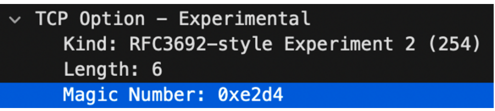 在 SMC-R 连接建立前,通信两端并不知道对端是否同样支持 SMC-R。因此,两端会首先建立一条 TCP 连接。在 TCP 连接三次握手的过程中通过发送携带特殊的 TCP 选项的 SYN 包表示支持 SMC-R,同时检验对端发送的 SYN 包中的 TCP 选项。