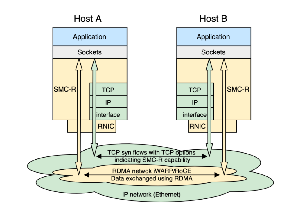 SMC-R is an open sockets over RDMA protocol that provides transparent exploitation of RDMA (for TCP based applications) while preserving key functions and qualities of service from the TCP/IP ecosystem that enterprise level servers/network depend on!