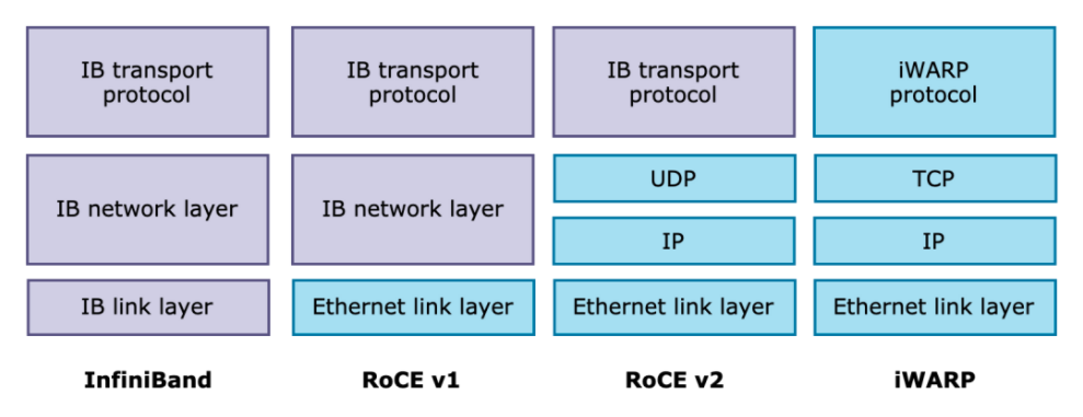 目前,RDMA 网络的主流实现有三种:InfiniBand、RoCE 和 iWARP。其中,RoCE 作为在高性能与高成本中权衡的方案,在使用 RDMA 的同时兼容以太网协议,既保证了不错的网络性能,同时也降低了网络组建成本,因此倍受企业青睐,Linux 上游社区版本的 SMC-R 也因此使用 RoCE v1 和 v2 作为其 RDMA 实现。