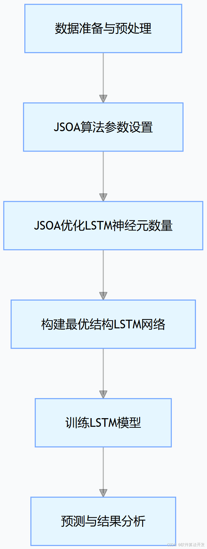 JSOA算法模拟跳蛛的捕食行为(攻击、追击、跳跃)和搜索行为(全局搜索、局部搜索),以LSTM模型的预测误差(如MSE)为适应度函数,搜索最优神经元数量。每轮迭代中,每个"跳蛛个体"(候选神经元数量)按以下规则更新位置: