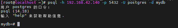 psql -h 192.168.42.140 -p 5432 -U postgres -d mydb