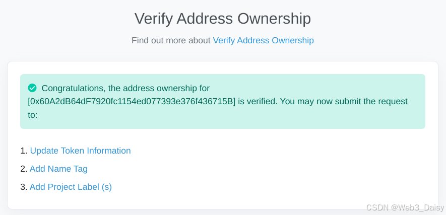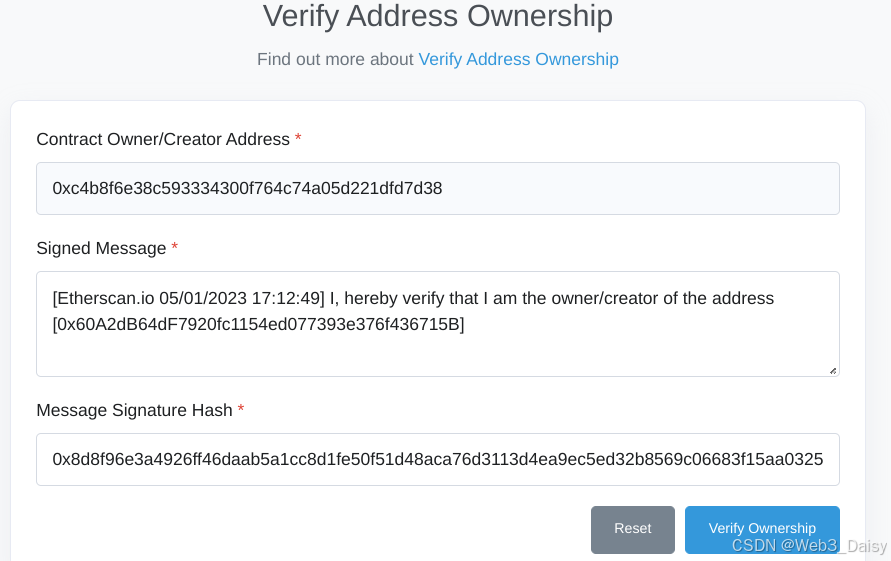 Etherscan 会验证你是否是合约拥有者,因此你必须能签名验证。