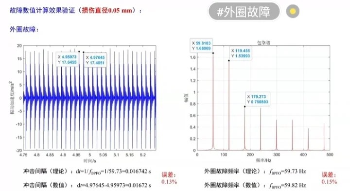 类似地,对于内圈故障和滚动体故障,我们也通过修改激励力的形式来模拟。内圈故障激励力频率与内圈故障特征频率相关,滚动体故障激励力如前文所述用脉冲力模拟。