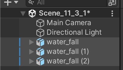 (4)在场景中创建多个Water模型,调整它们的位置、大小和方向,然后把第2步中的材质拖曳给它们。