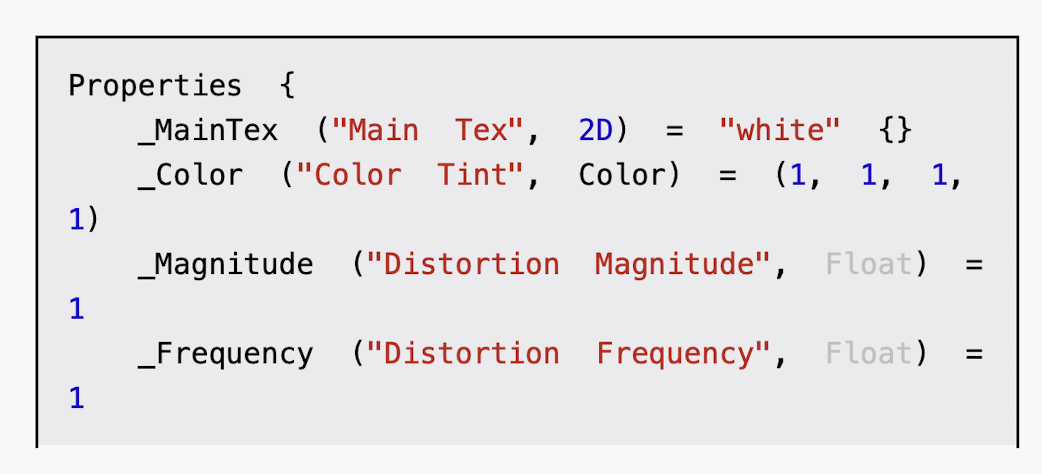 _Frequency ("Distortion Frequency", Float) = 1 //_Frequency用于控制波动频率