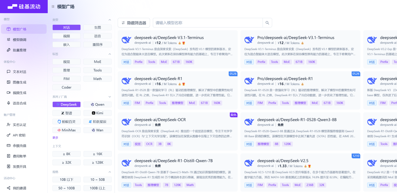 在模型广场挑选自己喜欢的模型,不同的模型价格不同。