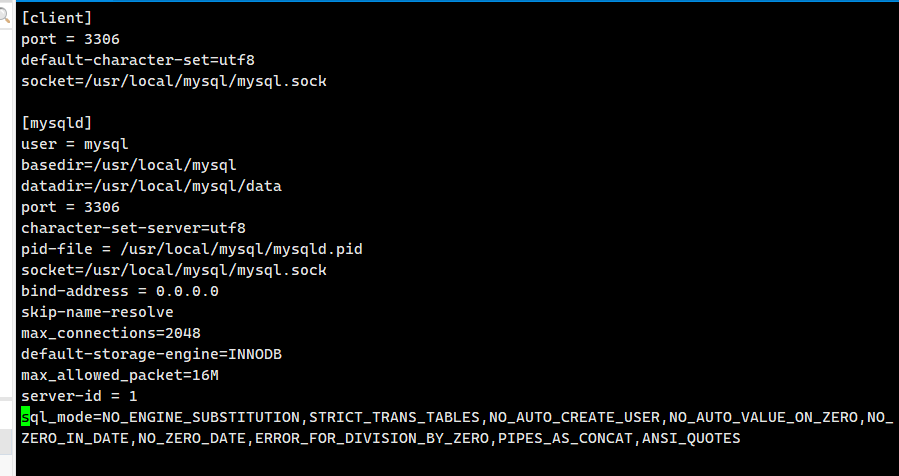 vim /etc/my.cnf 删除原配置项,再重新添加下面内容