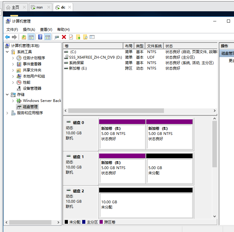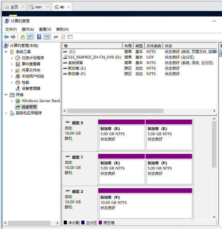 结果验证:3块磁盘的"磁盘类型"从"基本"变为"动态"。
