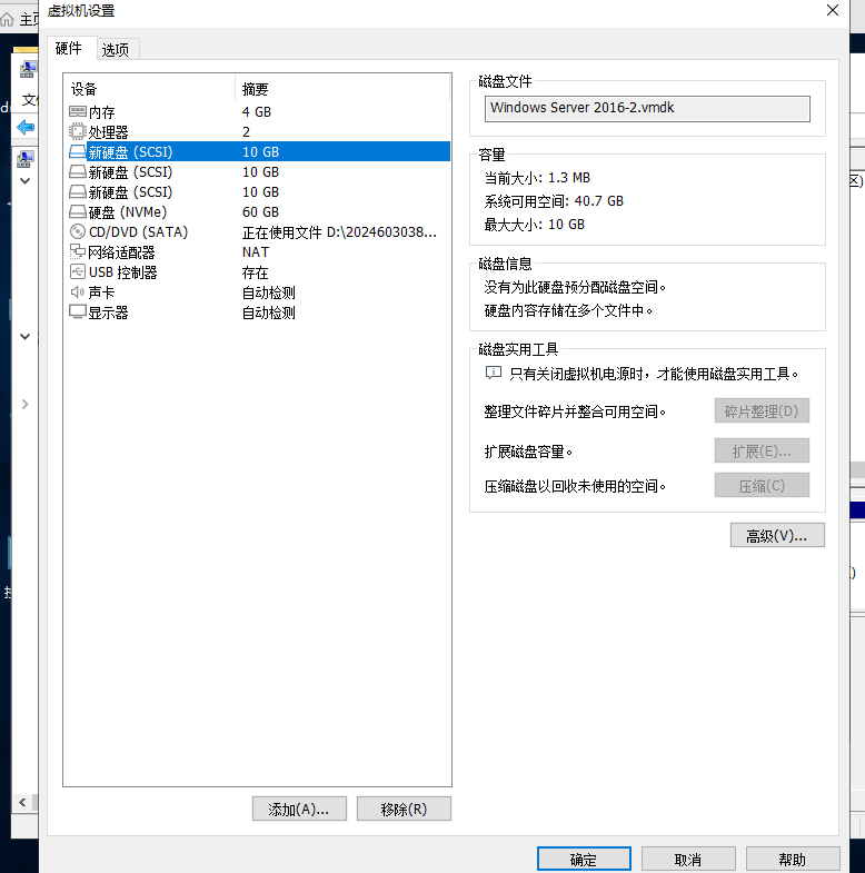 关闭Server 2016虚拟机(必须关机添加,开机添加需重启识别)