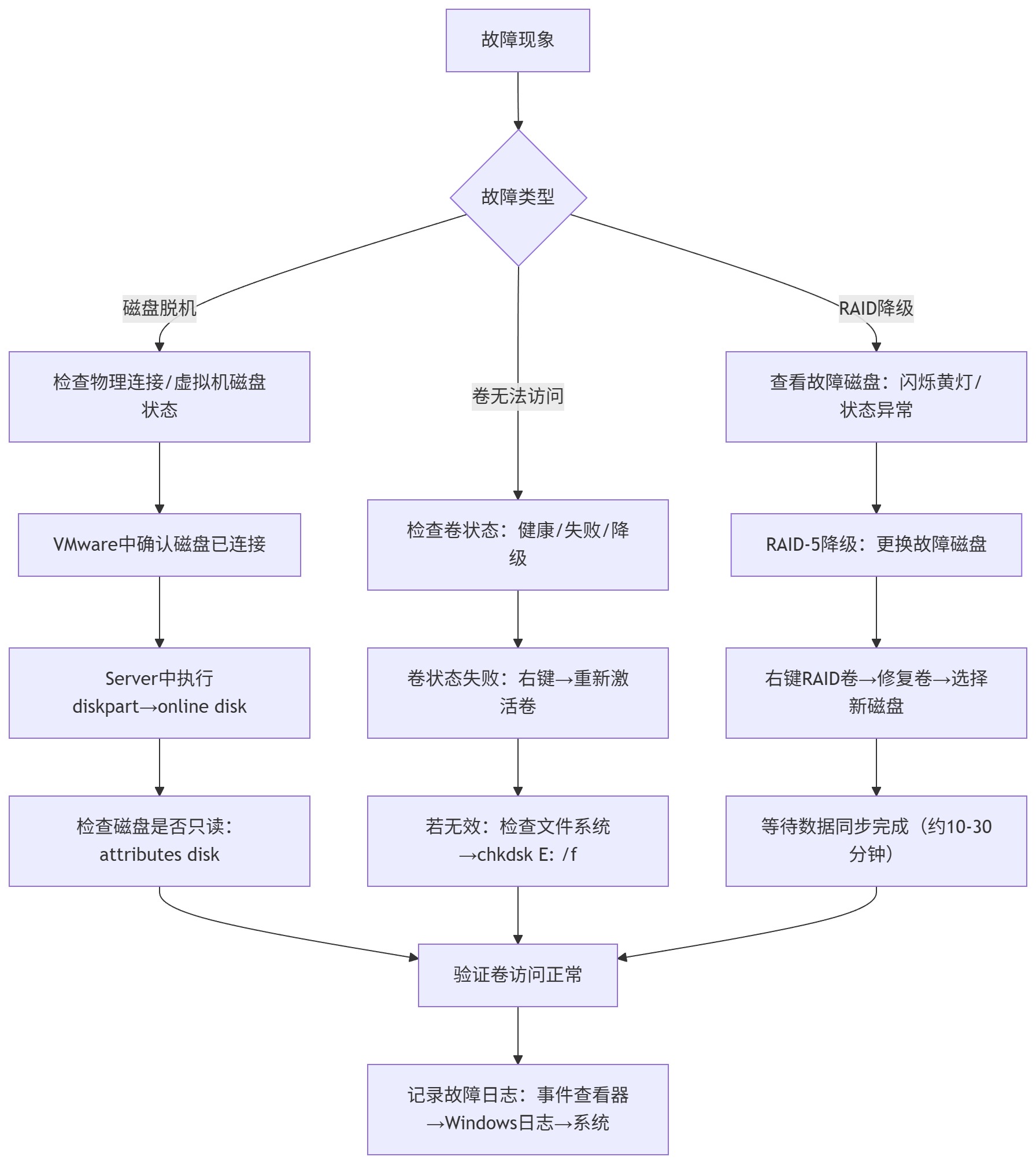 生产环境中,磁盘故障多表现为"磁盘脱机""卷无法访问""RAID降级",以下是Server 2016专属排查流程: