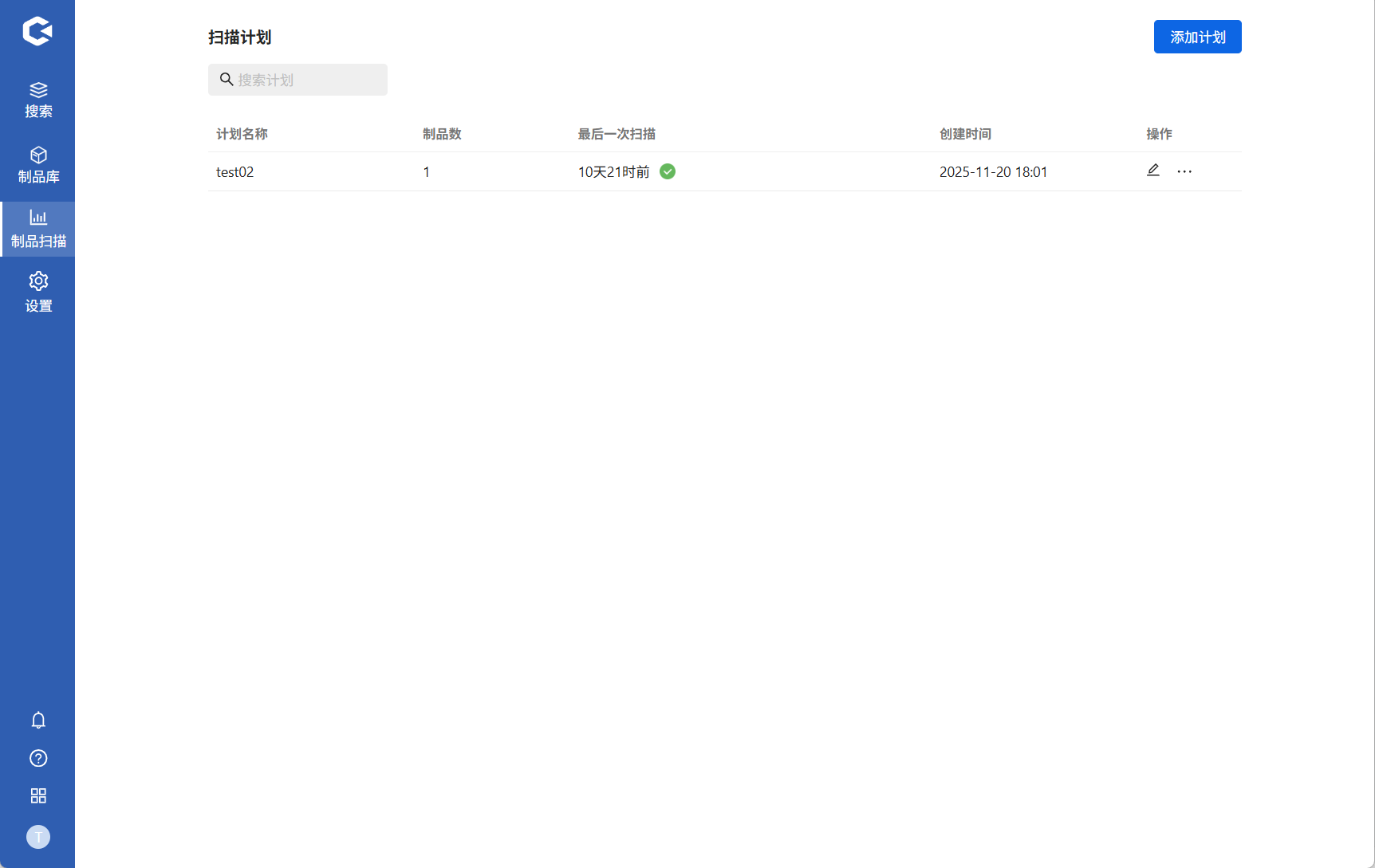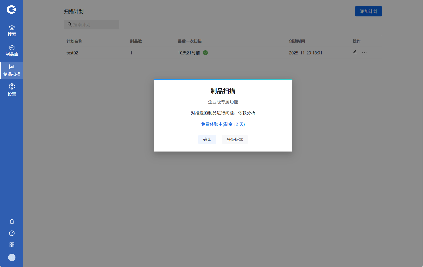 1.进入Hadess后,直接点击左侧制品扫描进入制品扫描页面