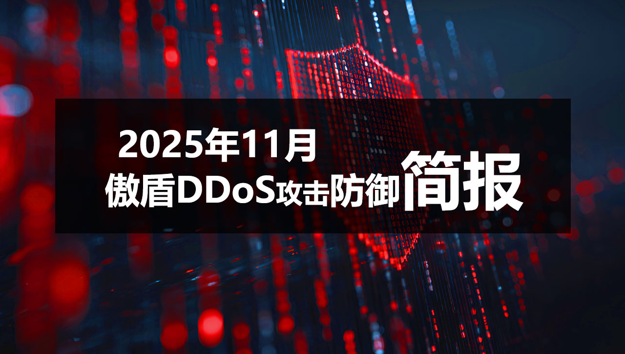 2025 年 11 月,全球 DDoS 攻击态势依旧呈现出高频、分布广、攻击方式复杂化等特点。随着攻击资源不断扩张、自动化武器库持续演进,各行业业务系统在面对突发性高流量冲击时愈发显得脆弱。为帮助客户及时掌握本月攻击趋势与威胁变化,傲盾对全国及海外多个区域的 DDoS 攻击数据进行了系统统计与深入分析,并对攻击类型、规模、来源以及清洗系统的实际防御表现进行了全面呈现。