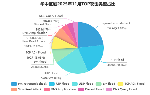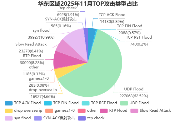 ● **区域差异明显:**华北以高次数短时攻击为主,华中以超大流量攻击领跑,全国攻击压力结构呈现多样化特征。