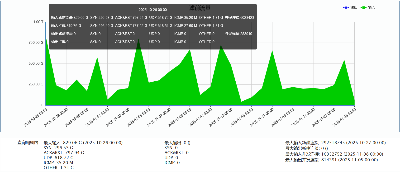 ►单次最大攻击流量829.06 Gbps(发生于 2025-10-25 23:50至2025-10-26 00:00时段)