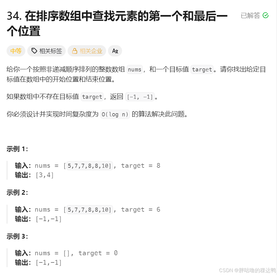 \[[https://leetcode.cn/problems/find-first-and-last-position-of-element-in-sorted-array/description/](%E6%8E%92%E5%BA%8F%E6%95%B0%E7%BB%84%E4%B8%AD%E6%9F%A5%E6%89%BE%E5%85%83%E7%B4%A0%E7%9A%84%E7%AC%AC%E4%B8%80%E4%B8%AA%E5%92%8C%E6%9C%80%E5%90%8E%E4%B8%80%E4%B8%AA%E4%BD%8D%E7%BD%AE)\]