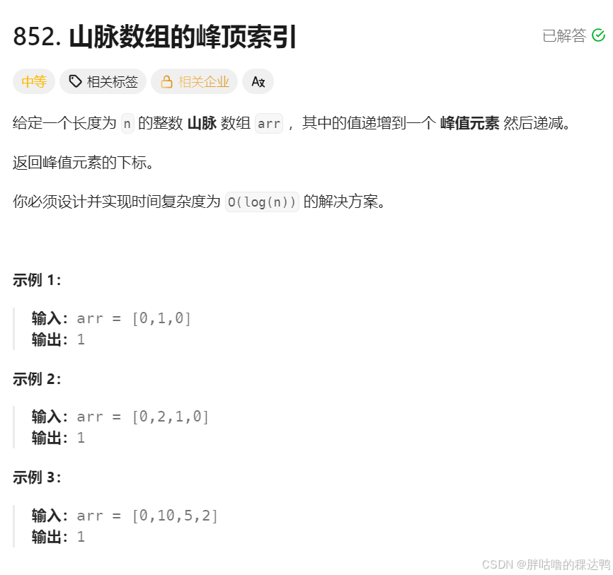 https://leetcode.cn/problems/peak-index-in-a-mountain-array/description/