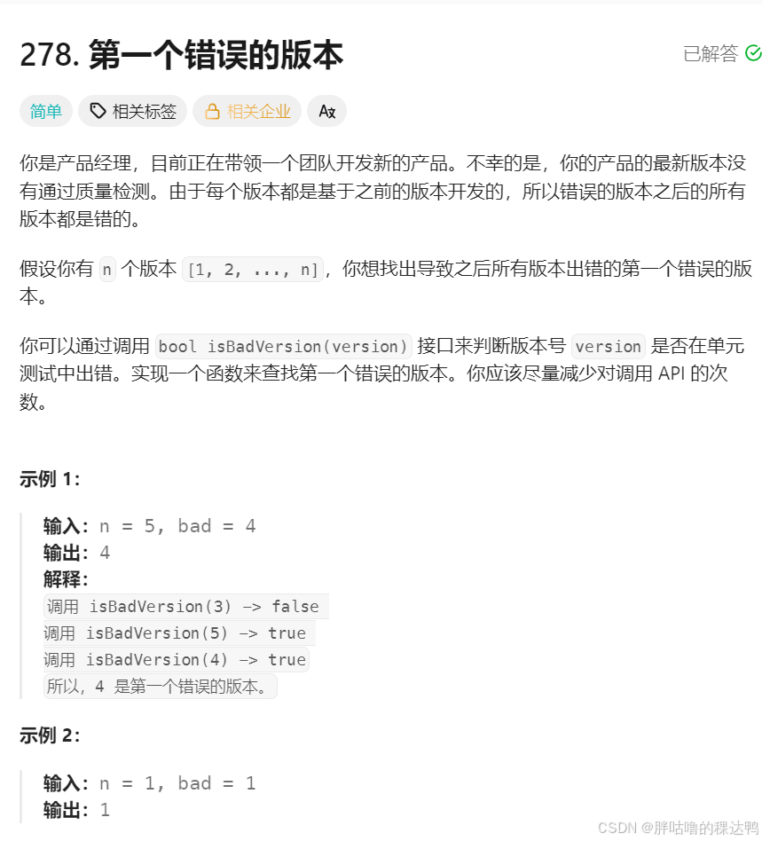 如果mid不是错误版本,就说明第一个错误版本在[mid+1,n]中,left= mid+1;