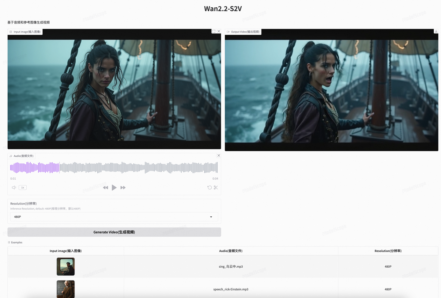 模型链接:https://www.modelscope.cn/models/Wan-AI/Wan2.2-S2V-14B