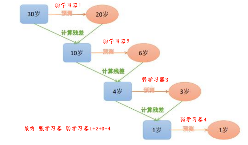 - 核心逻辑是 "三个臭皮匠顶个诸葛亮",让多个弱学习器(性能略优于随机猜测的模型)协同,形成强学习器。