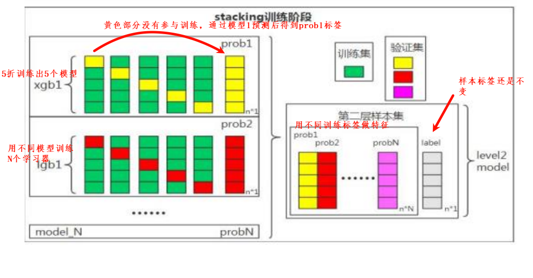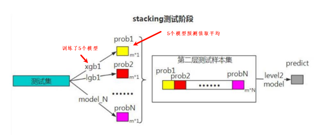 - Stacking(有时候也称之为stacked generalization)是指训练一个模型用于组合(combine)其他各个模型。即首先我们先训练多个不同的模型,然后再以之前训练的各个模型的输出为输入来训练一个模型,以得到一个最终的输出。