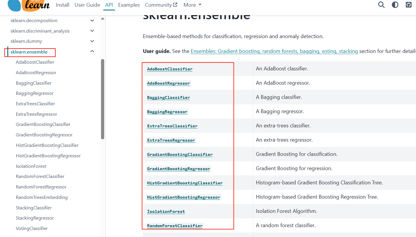 网址:https://scikit-learn.org/stable/api/sklearn.ensemble.html