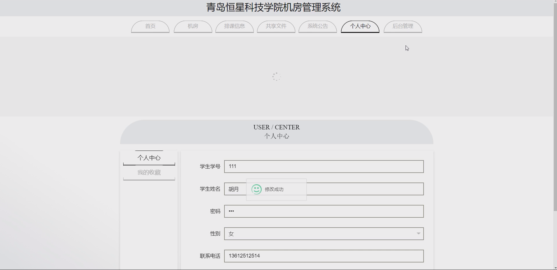 机房管理模块:管理员可添加、修改、删除机房信息,实时更新机房使用状态与设备配置;师生可查询机房的基本信息与当前占用情况,为预约与排课提供参考。