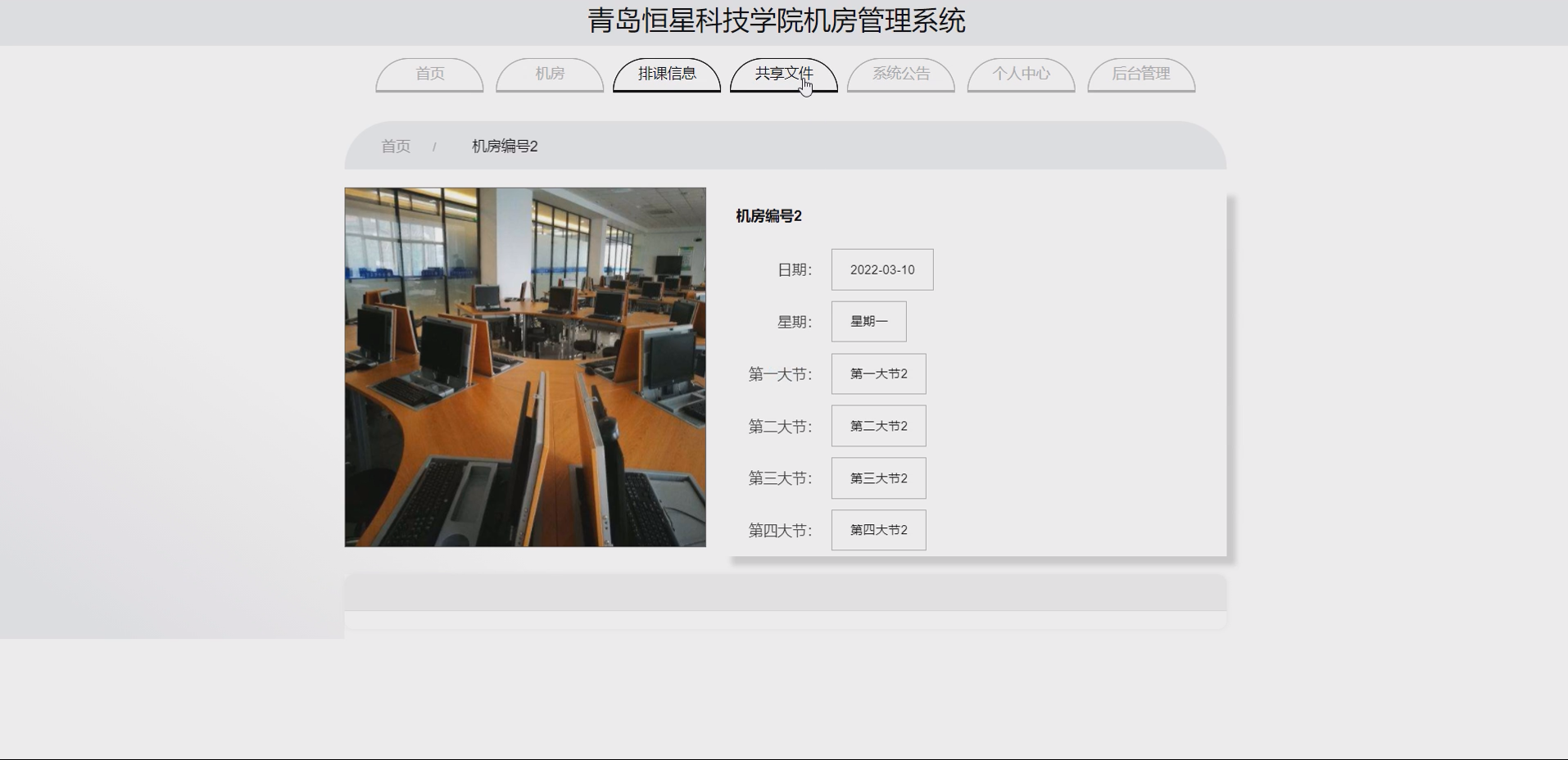 系统项目功能:学生,教师,机房,排课信息,共享文件