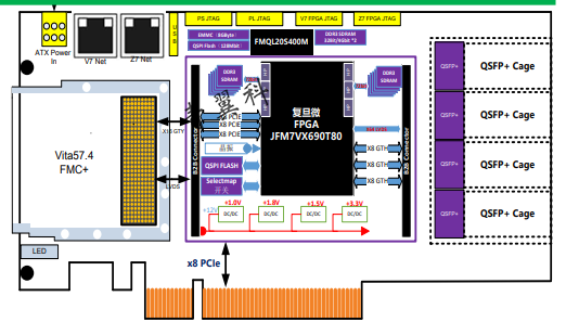 - 板载 1 个 JFM7VX690T FPGA 核心模块: