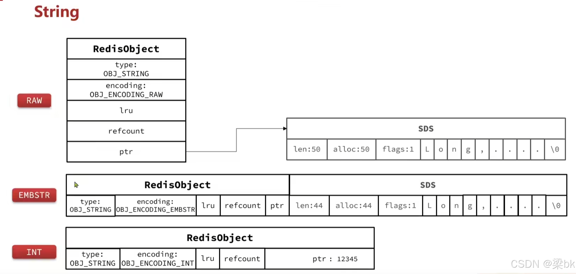 | EMBSTR | RedisObject + SDS 连续内存 | 短字符串、高性能 | |