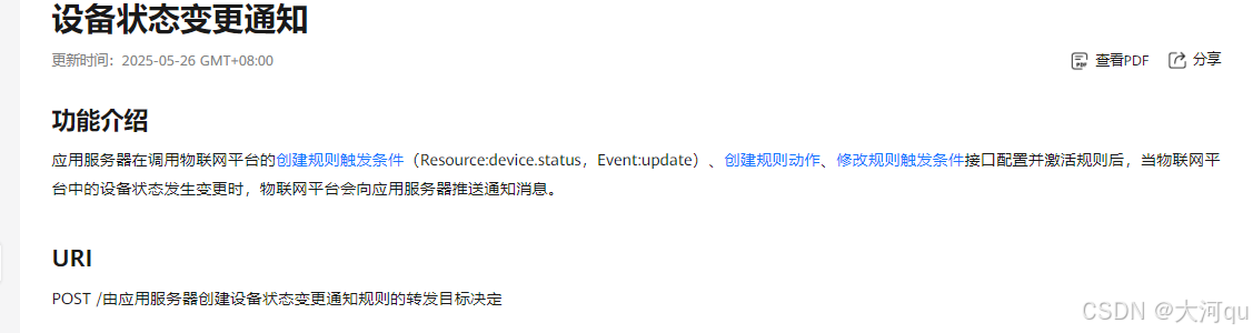 但是后来,我对这个题目有了新的理解,参考,https://support.huaweicloud.com/usermanual-iothub/iot_01_00140.html题目中的"平台向应用推送消息"应该是指一种数据转发功能,