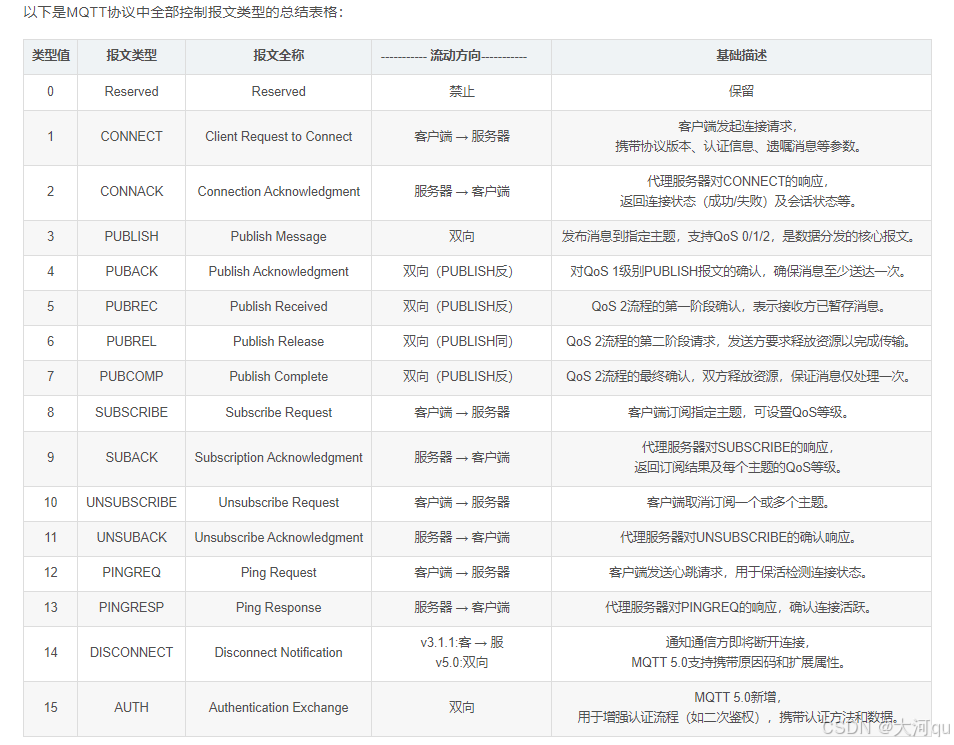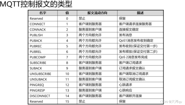 下列MQTT协议的控制报文类型中,报文流动方向为从服务器到客户端的是哪一项?