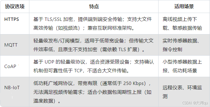 解析:只有Https是支持大文件高效率传输的。MQTT和CoAP都是轻量级协议。NB-IoT的带宽非常窄。