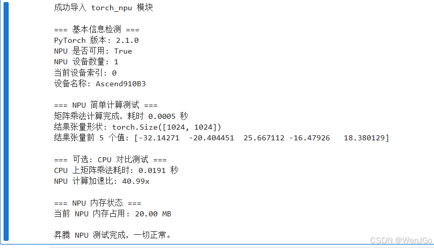 print("\n昇腾 NPU 测试完成,一切正常。")
