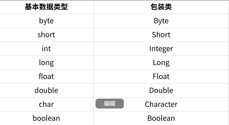 1.1 基本数据类型和对应的包装类