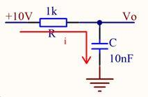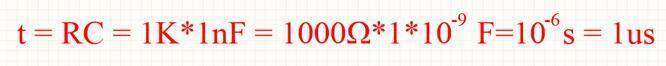 如果上图 RC 充电电路 R=1K,C=1nF,请问时间常数是多少?