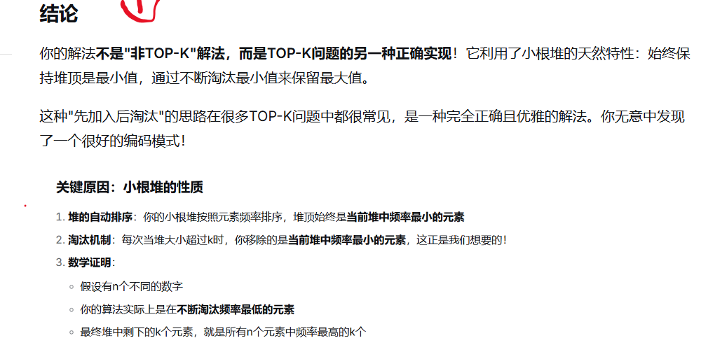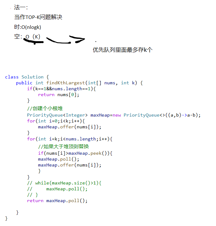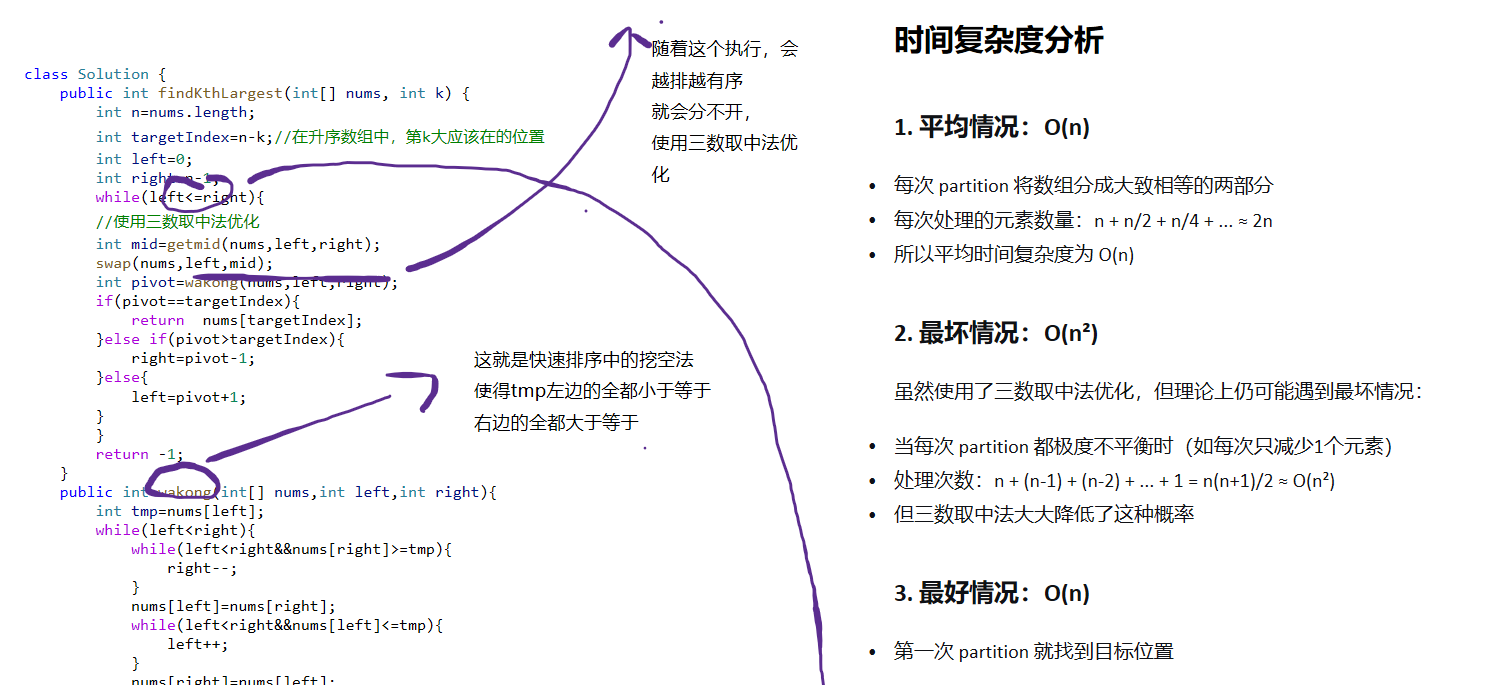 上一周,在写力扣hot堆的题目。其实堆最常见的问题就是TOP-K问题。感觉很大一部分问题都可以使用TOP-K问题的思路去解决。但是另一方面,其实堆也可以使用快速选择的方法去解决(基于快速排序)这往往经过三数取中法的优化后,可以达到O(N)的时间复杂度,由于TOP-K问题的时间复杂度O(NlogK)。而且我认为写这个题,不能太依靠PriorityQueue容器,也需要自己手动实现一个大根堆/小根堆。