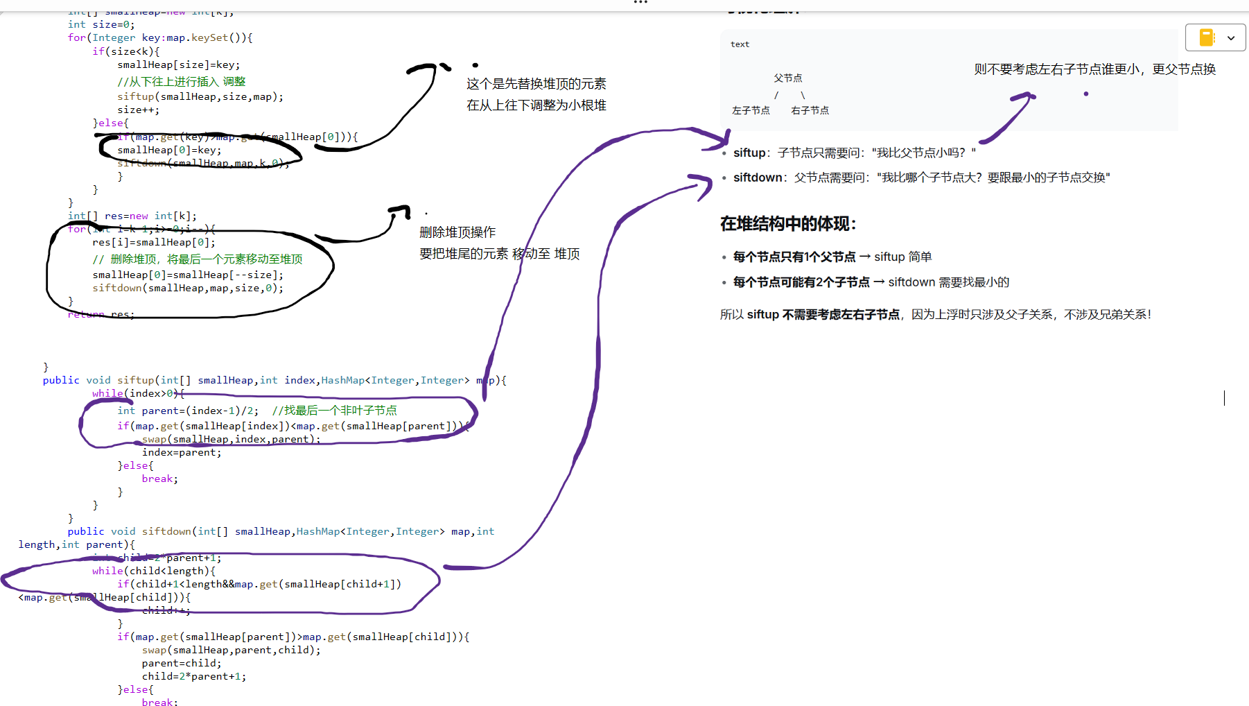 siftdown(smallHeap,map,k,0);