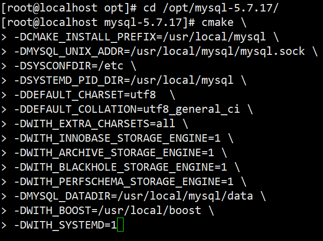 bashtar zxvf mysql-5.7.17.tar.gz -C /opt tar zxvf boost_1_59_0.tar.gz -C /usr/local/ mv /usr/local/boost_1_59_0 /usr/local/boost