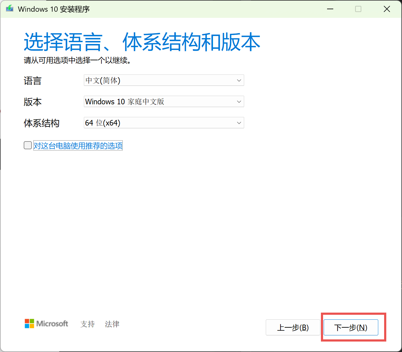 👉 一般用户选择 "Windows 10" 即可。