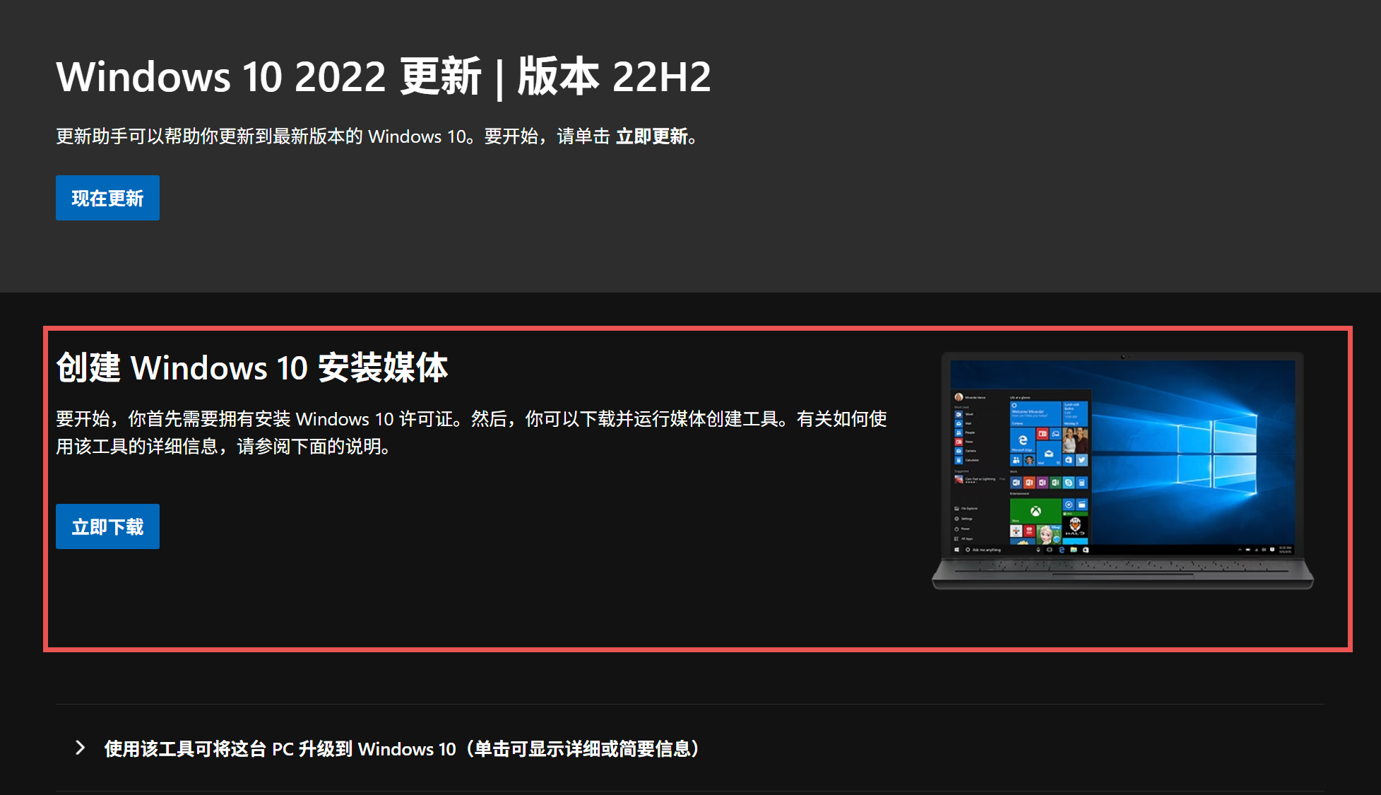 - "立即下载工具" → 适用于在当前电脑上直接升级或制作启动U盘