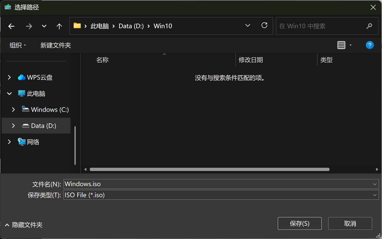 选择一个有 至少 8GB 空间 的文件夹保存(ISO 文件约 4--5GB),点击【保存】,等待下载完成。