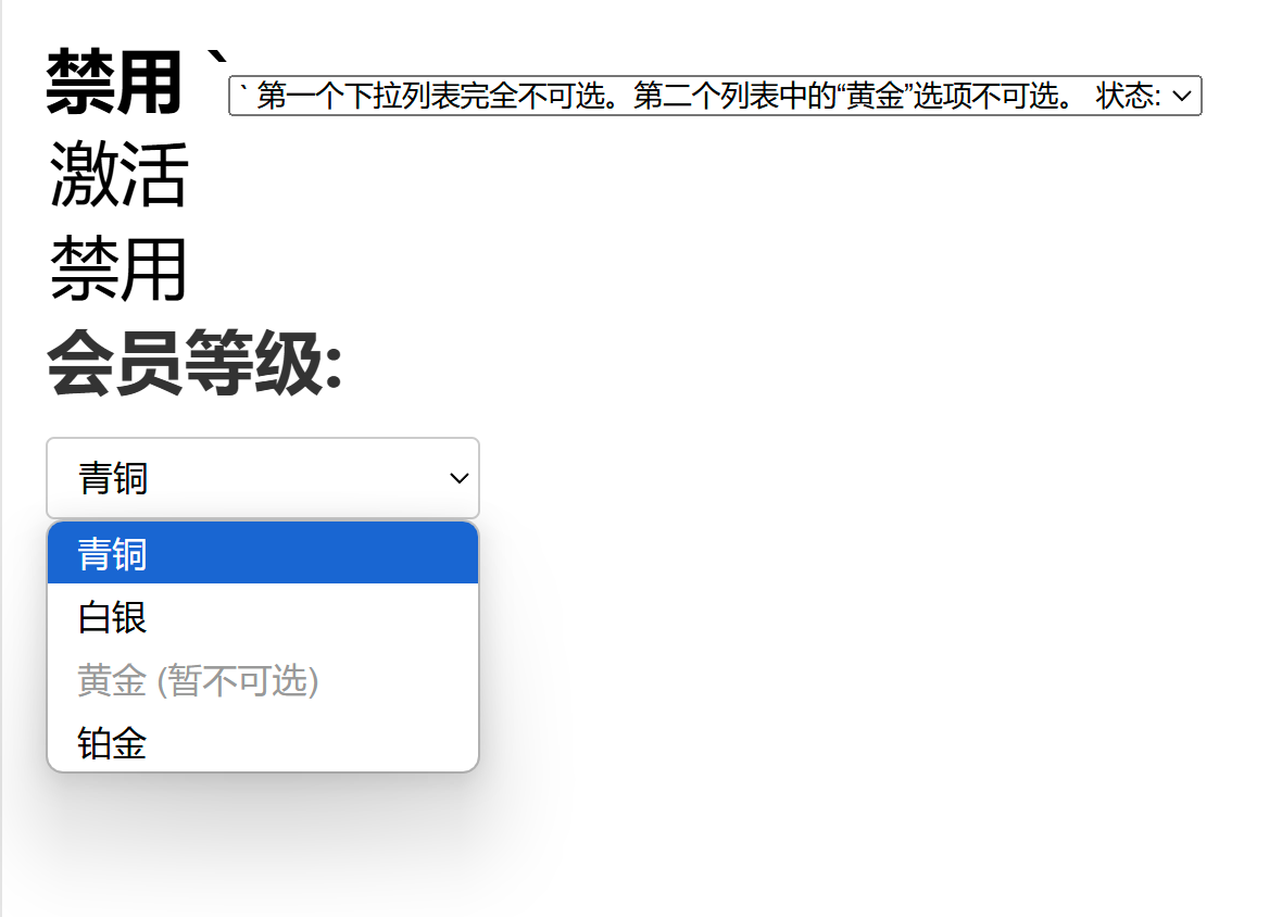 <h1>禁用 `<select>` 和 `<option>`</h1>