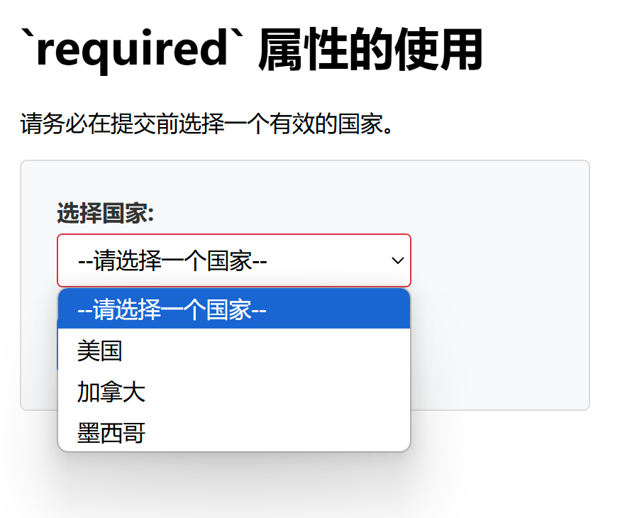 /* 针对 required 验证的样式,浏览器默认行为通常会显示提示 */
