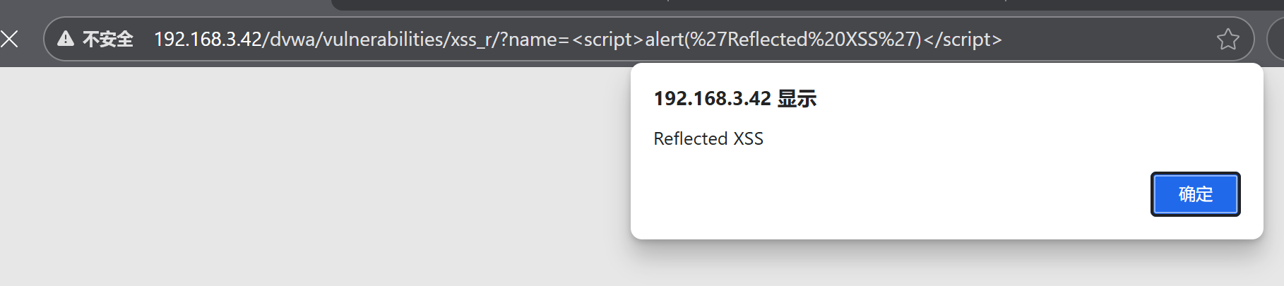http://192.168.3.42/dvwa/vulnerabilities/xss_r/?name=<script>alert('Reflected XSS')</script>