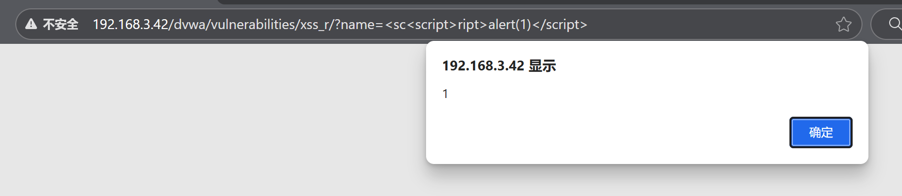 http://192.168.3.42/dvwa/vulnerabilities/xss_r/?name=<sc<script>ript>alert(1)</script>
