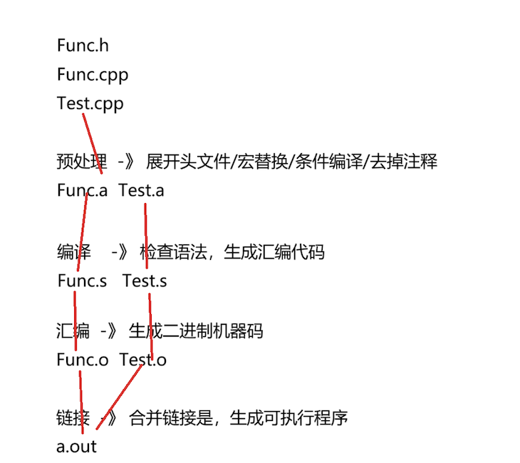 比如说一个函数 他只有.h文件的声明 没有.cpp的实现 那么他就会有链接错误 下图是文件编译的全过程: