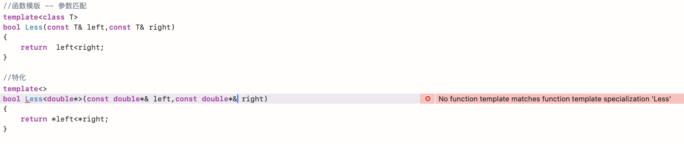 通常情况下,使用模板可以实现一些与类型无关的代码,但对于一些特殊类型的可能会得到一些错误的结果,需要特殊处理。