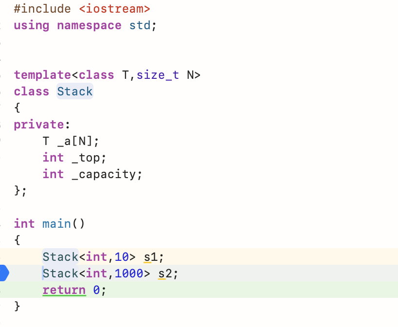由于T的存在我们可以给Stack里面的参数定义为int、char、自定义类型等,但是如果我想创建两个Stack类 一个_a容量为10 一个为1000呢,我们的#define只能定义一个N,这样仅靠类型参数就做不到了。