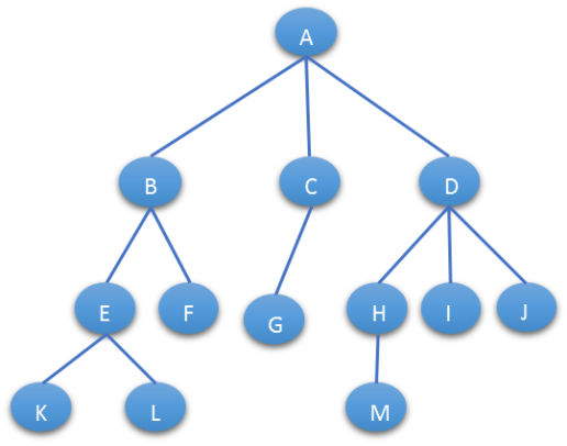 上图中的结点数= 13,树的度= 3,树的深度= 4