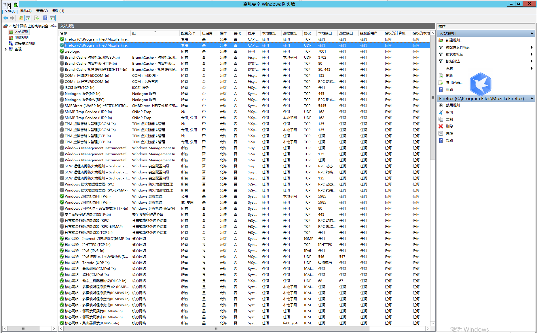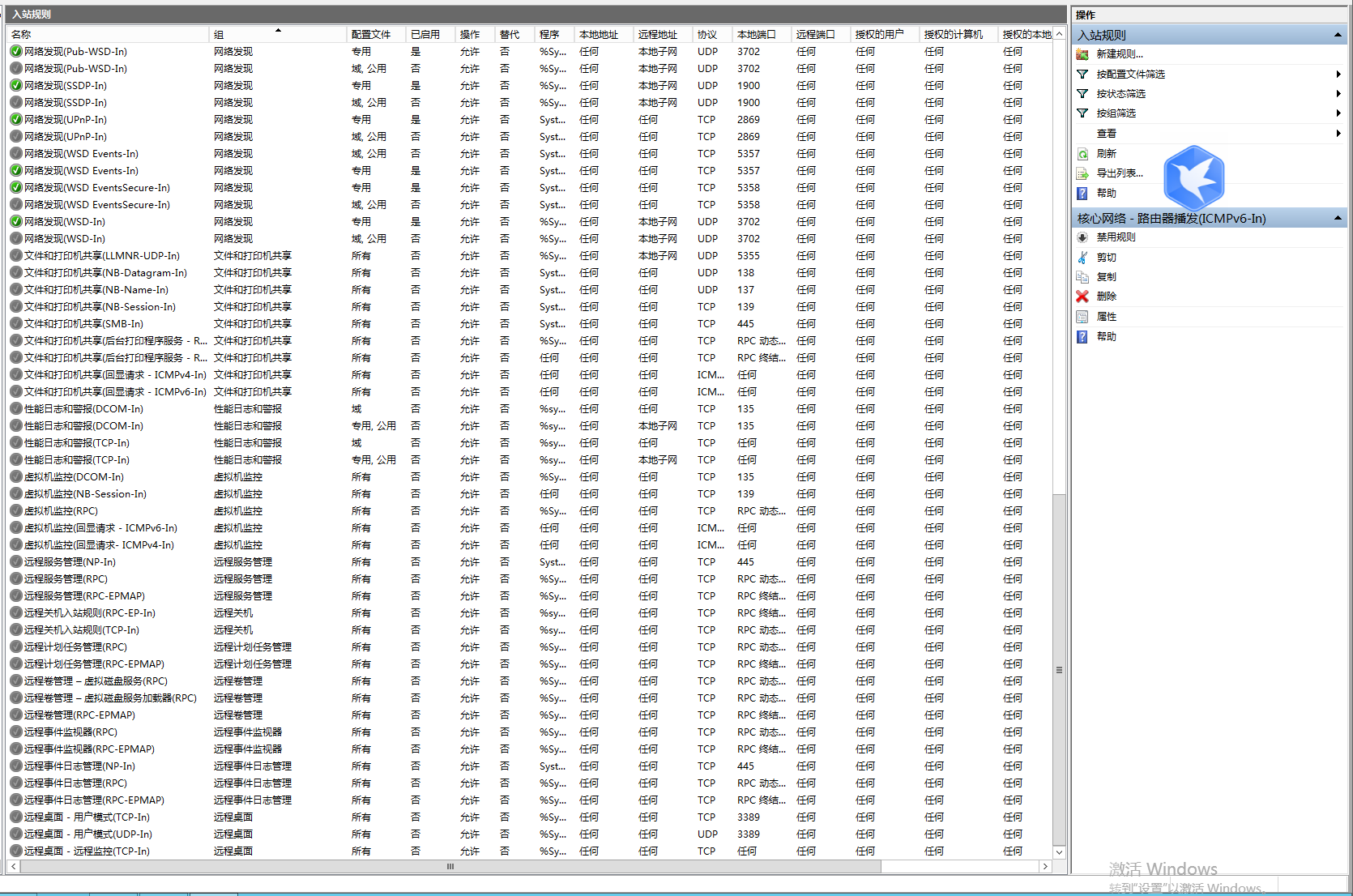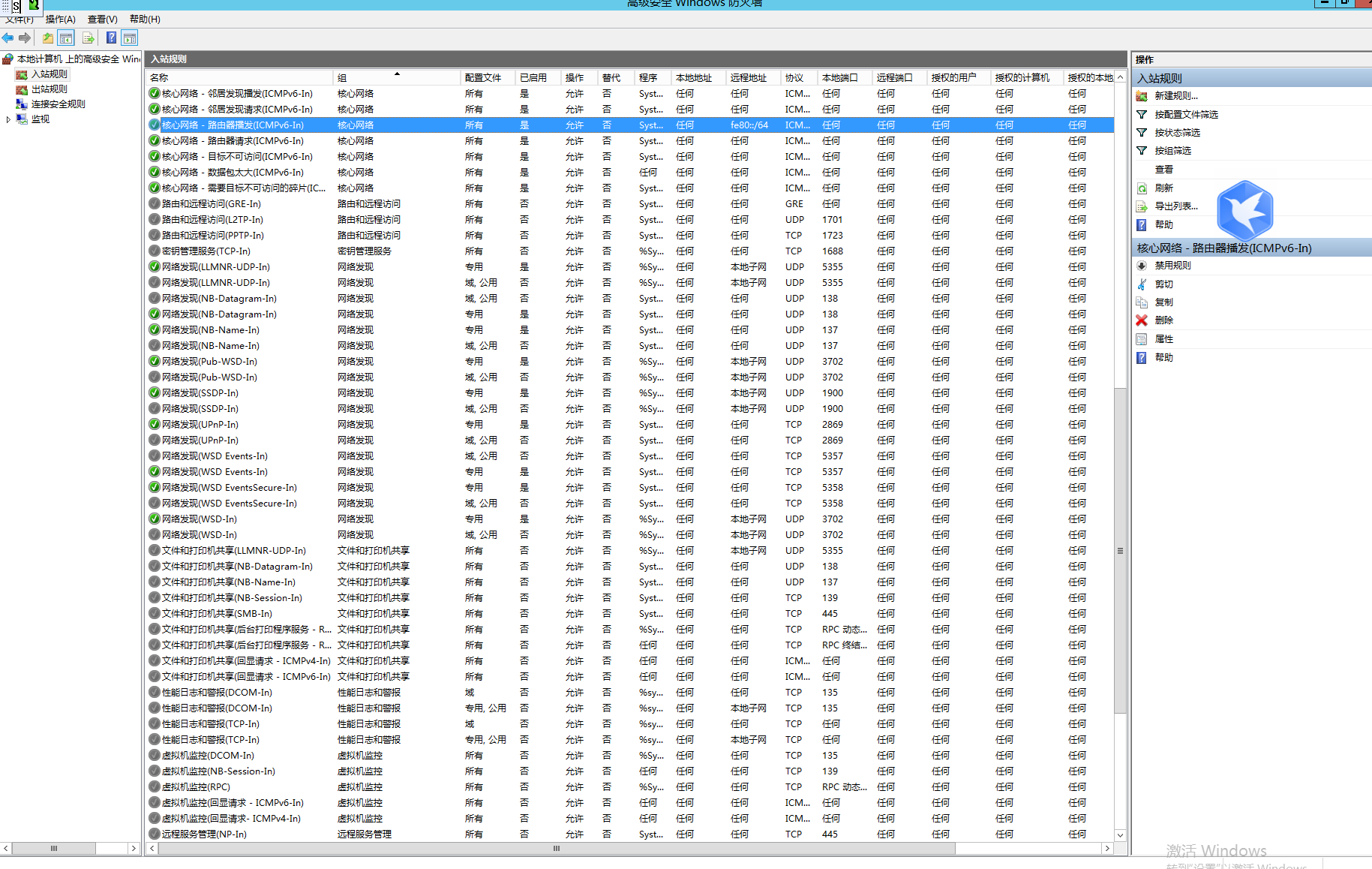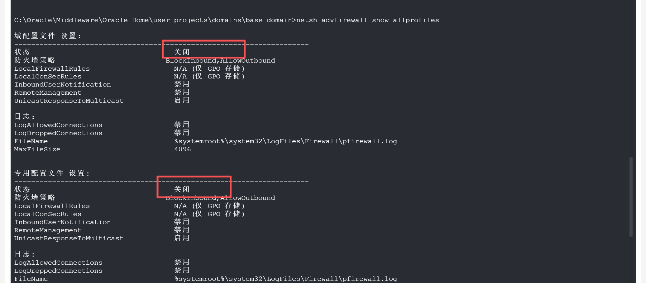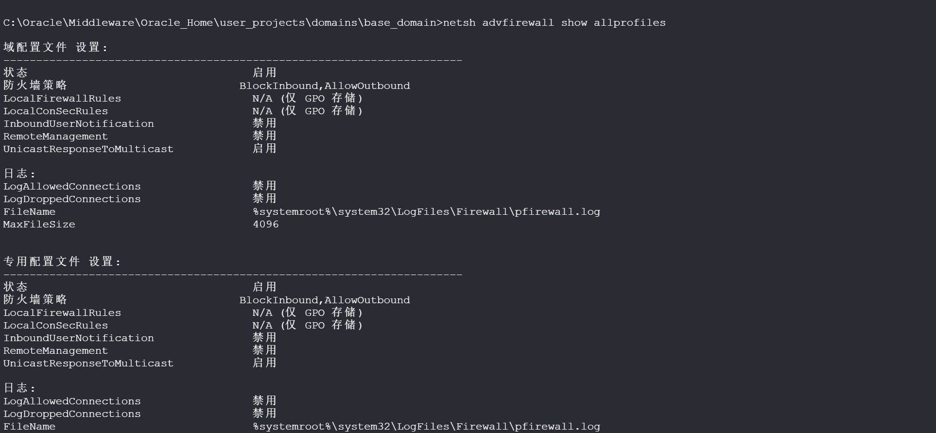 可以发现大多数的入站都被阻断了,只开了icmp和weblogic